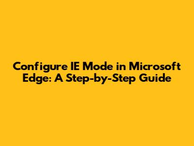 Configure IE Mode In Microsoft Edge: A Step-by-Step Guide