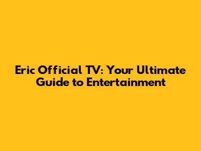 Eric Official TV: Your Ultimate Guide