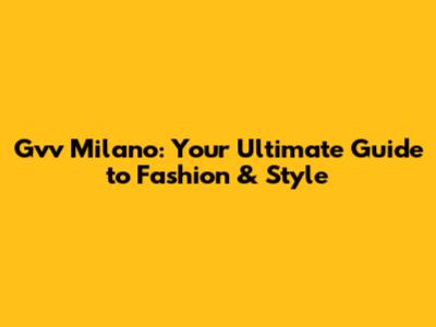 Gvv Milano: Your Ultimate Guide To Fashion & Style