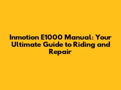 Inmotion E1000 Manual: Your Ultimate Guide