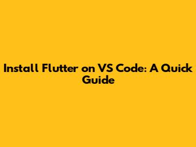 Install Flutter On VS Code: A Quick Guide