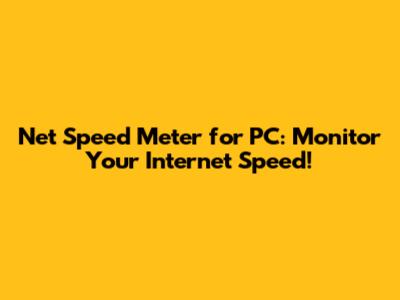 Net Speed Meter For PC: Monitor Your Internet Speed!