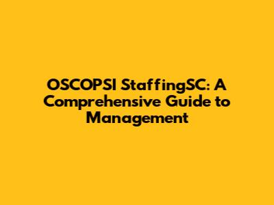 OSCOPSI StaffingSC: A Comprehensive Guide To Management
