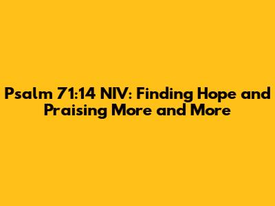 Psalm 71:14 NIV: Finding Hope And Praising More And More